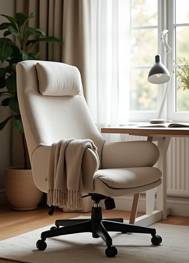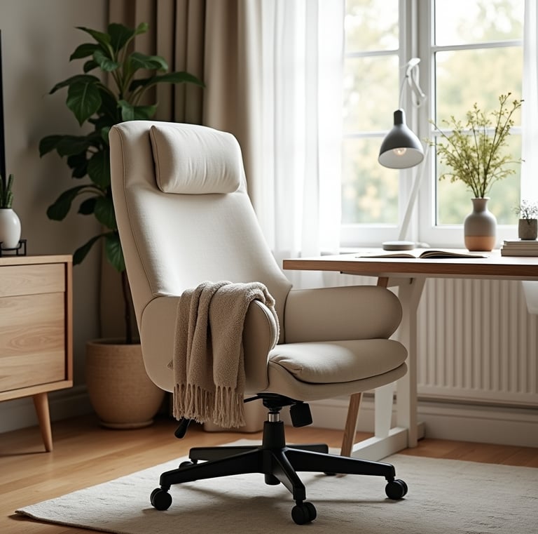 A cozy office starts with comfort. Choose a chair that supports your posture but also fits your aesthetic.