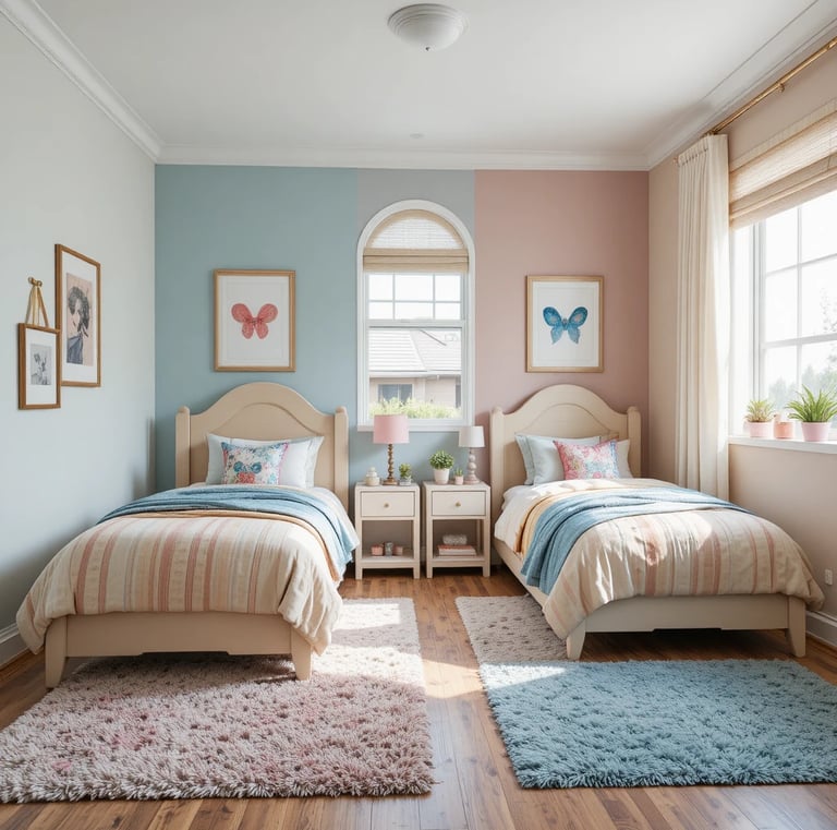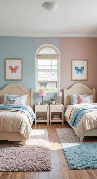 The key is finding the right balance between shared design elements and personal touches, so each child feels at home in the room.