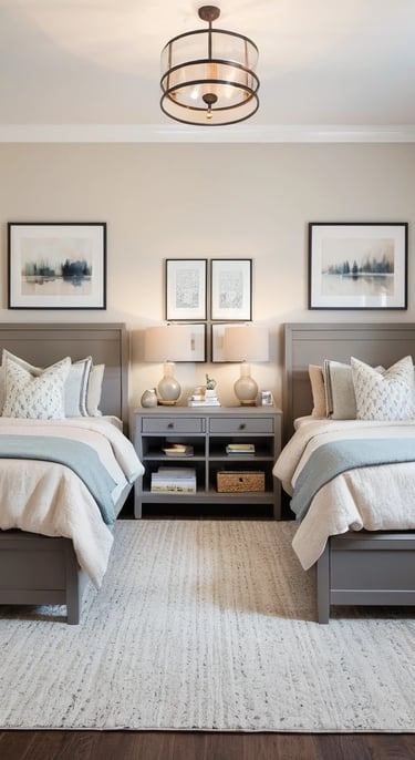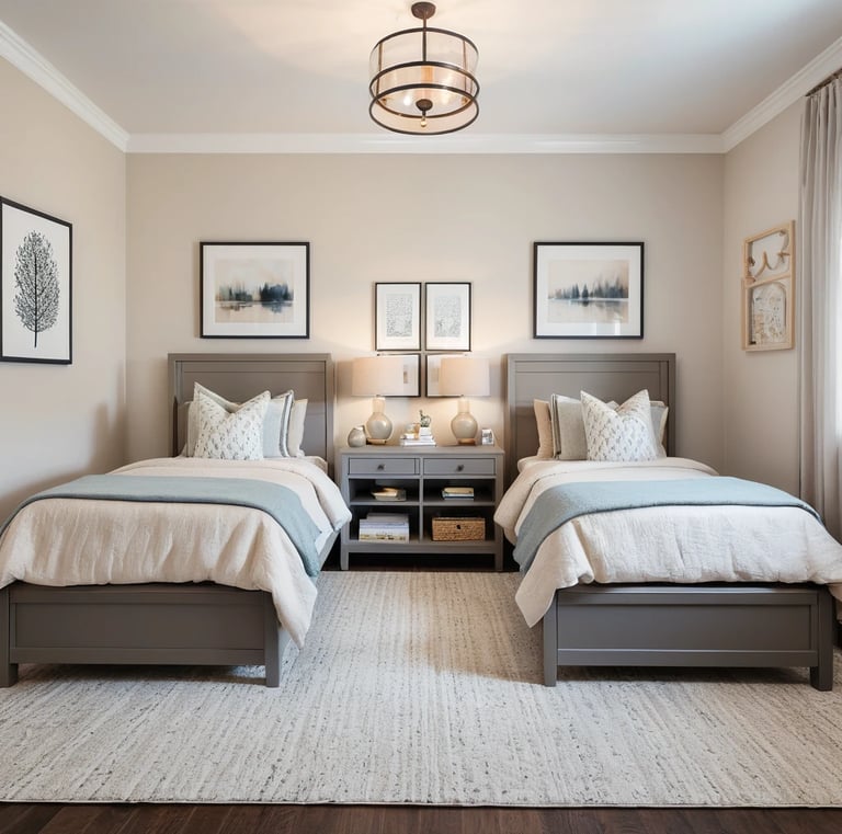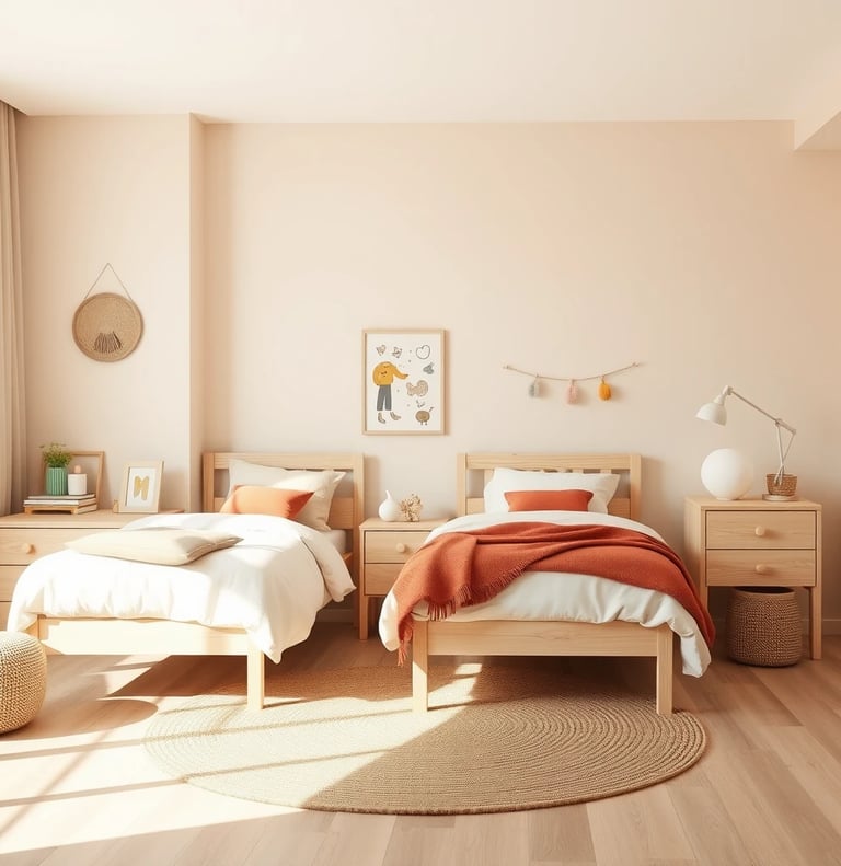 A symmetrical design works beautifully in shared bedrooms because it creates a balanced look.